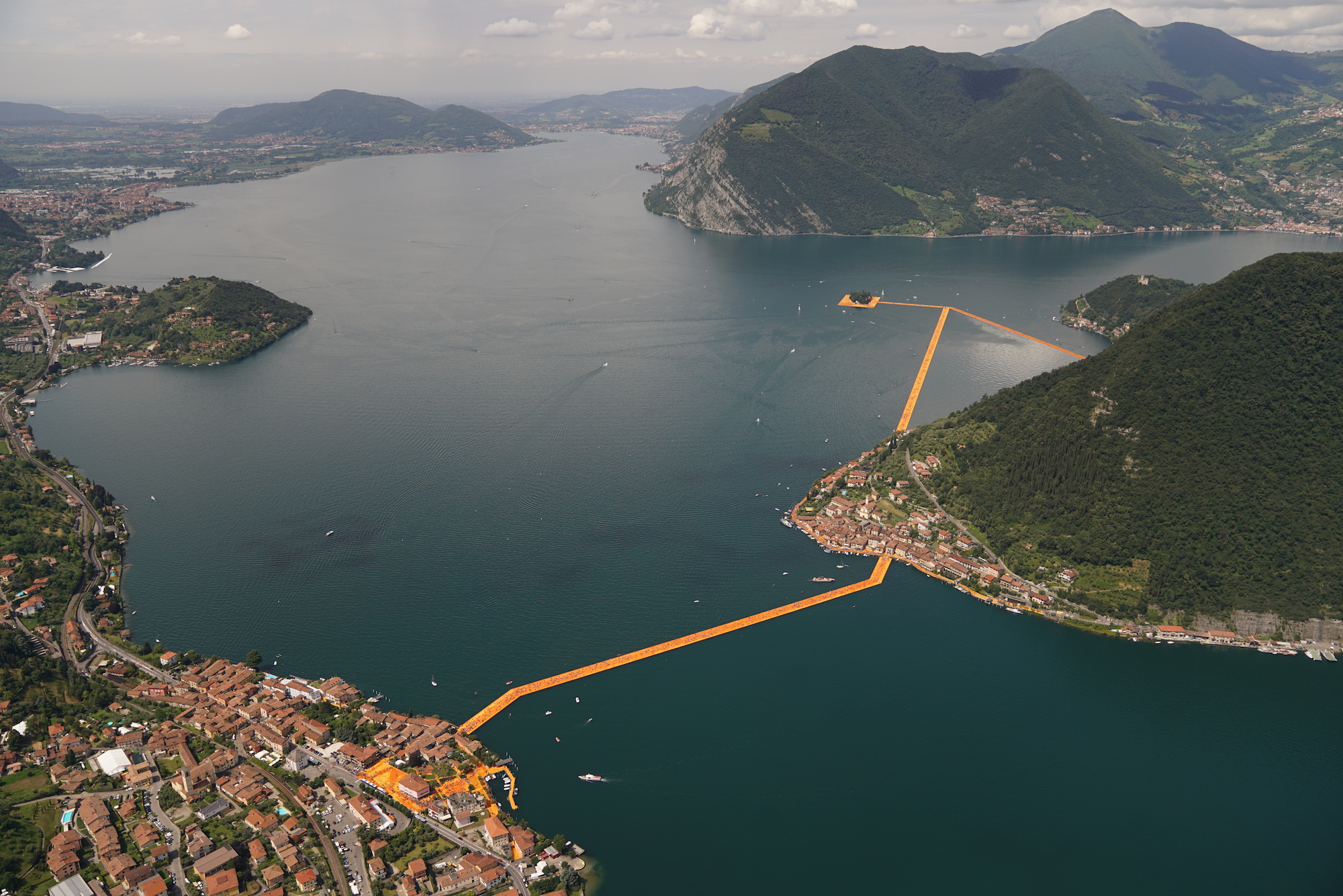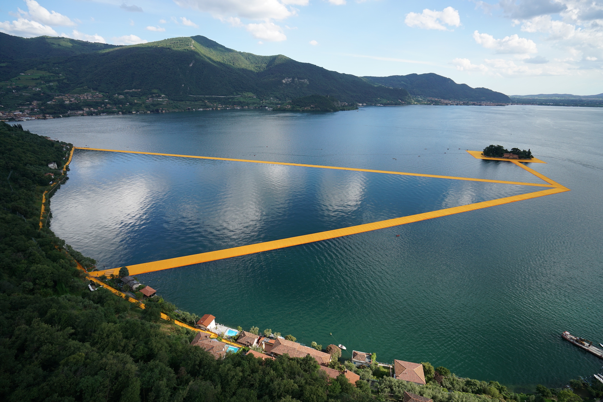 When you think about the famous artist Christo, you see in your mind a big, very big, work of art. Remember the Pont Neuf wrapped, in 1985 in Paris, France, for example. This time the artist has gone to Italy, in a large lake in the north part of the country: Lake Iseo, near Brescia. Now you ask: why? I answer: The Floating Piers.
